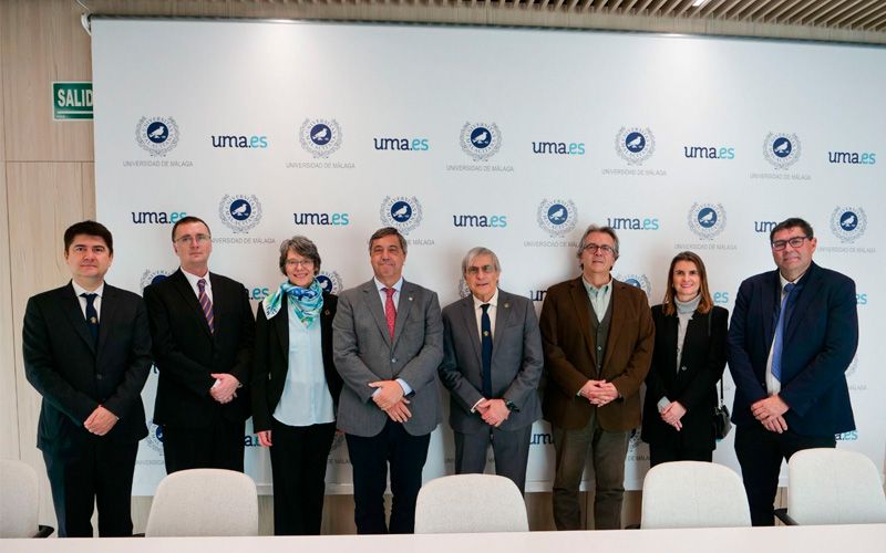 Imagen: Directivos de la IUPAC acompañados por el rector de la Universidad de Málaga. Tomada de: UMA, Formalizado el convenio para instalar la IUPAC en el Rectorado, 2026.